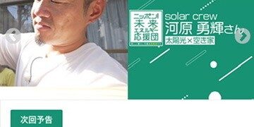 9月4日22時58分から弊社Solar Crewの河原が、テレ東の番組「ニッポン!未来エネルギー応援団」に出演します。